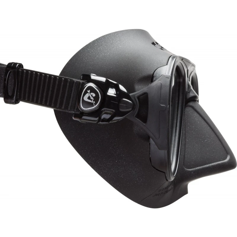 La structure du masque lui confère un aspect compact & une hydrodynamique qui lui permet de se maintenir très près du visage tout en bénéficiant de verres plus amples.