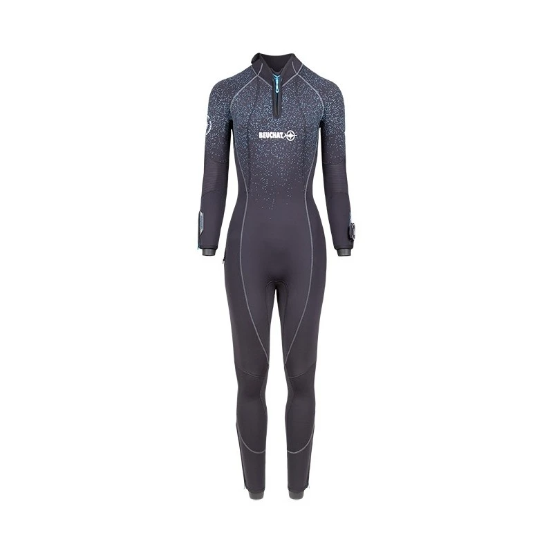 – Grand Zip dorsal « G-Lock plus » avec curseur métal & sous-patte au profil embossé Water Dam System pour une étanchéité accrue (brevet Beuchat) Zip poignet & cheville.
