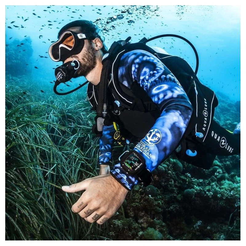 – Conception imprimée sur le poignet pour aider à garder les ordinateurs de plongée en place.