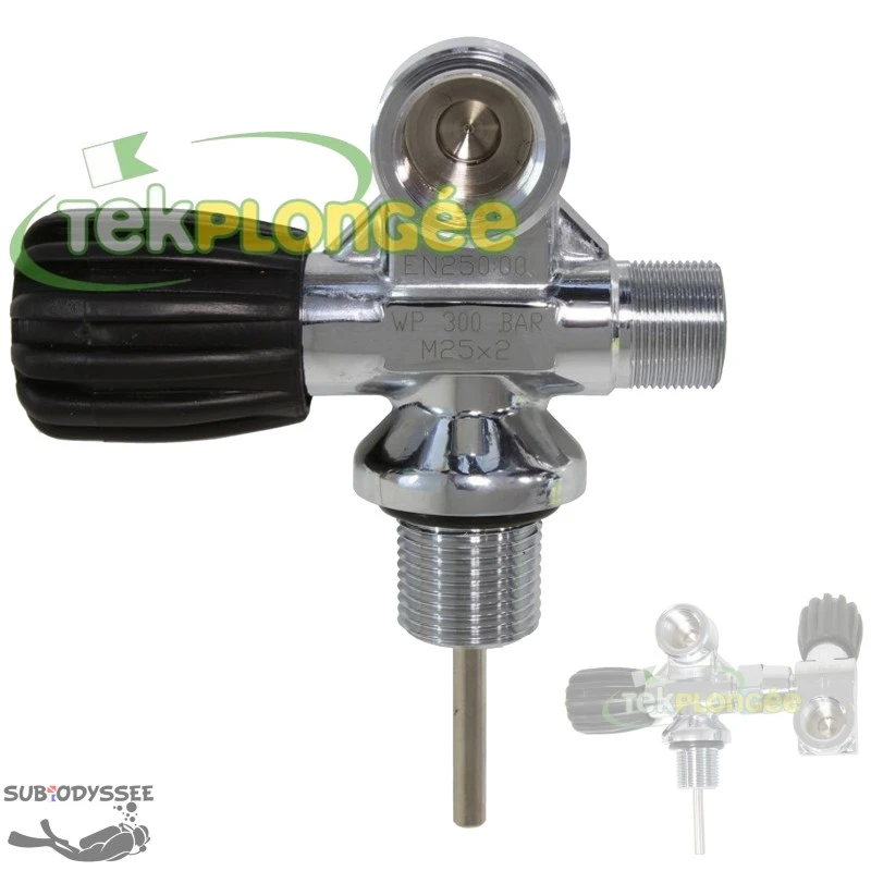 Robinet GAUCHE pour bouteilles de plongée G5/8 DIN & étrier international 232 bars modulaire.