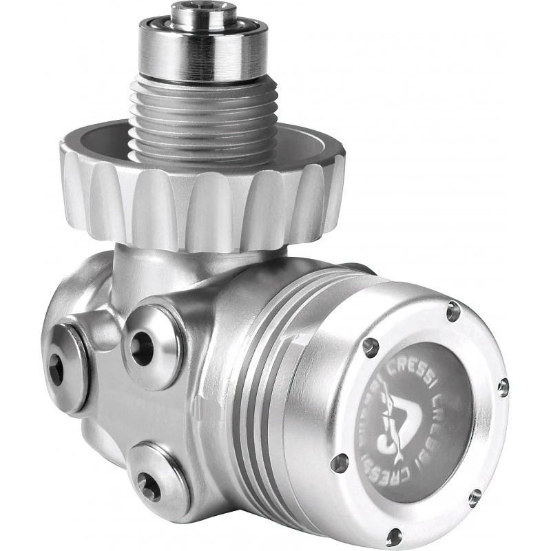 Le premier étage T10 SC CROMO se distingue de la gamme des détendeurs Cressi à membrane compensée par un mécanisme disposé sur un axe perpendiculaire à l’entrée d’air, créant une forme « T ». Les avantages de cette conception particulière comprennent un meilleur agencement des flexibles & moins d’espace occupé (en particulier dans cette version SC pour l`eau froide).