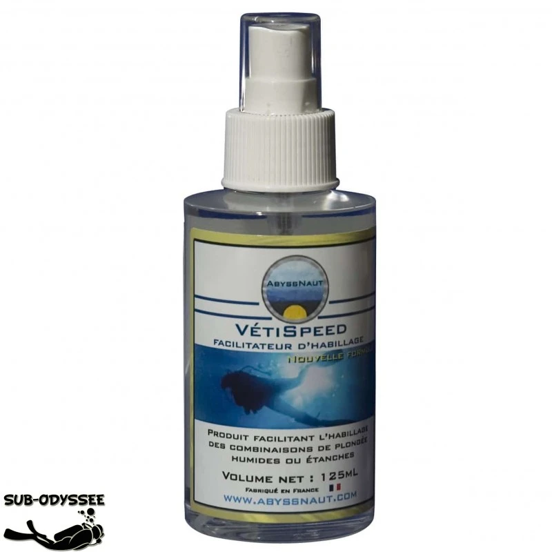 VétiSpeed est un lubrifiant synthétique, transparent, à pulvériser sur les manchons des combinaisons sèches ou humides afin de faciliter l’habillage.